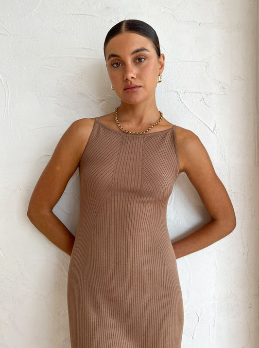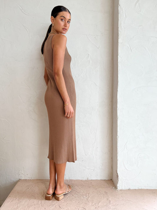 A transeasonal must-have, Elka Collective welcomes the Mills Knit Dress in Camel.