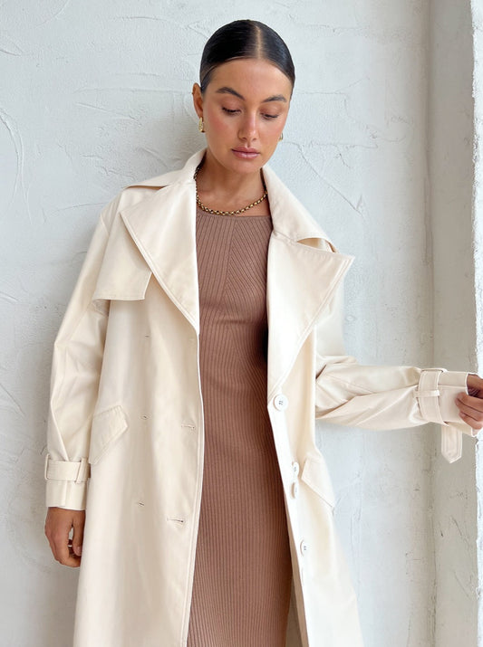 For special occasion styling complete the look with the Viktoria & Woods President Trench in Bone, Porter Chunky Belcher Necklace 2.0 in Gold, James Smith Medena Sandal in Nude, Porter Triple Heirloom Ring in Gold, and the Brie Leon Large Uma Earrings in Gold