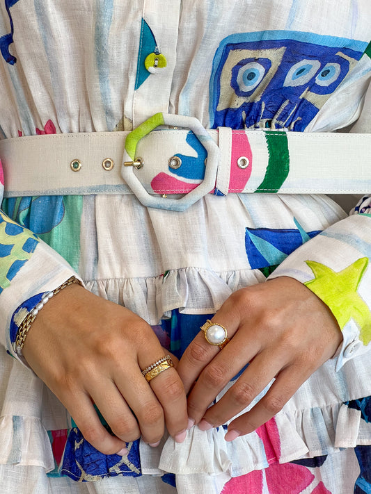 Complete the look with Amber Sceats Lane Ring in Gold, Amber Sceats Electra Ring Set in Gold and the Alias Mae Kacey Heel in Cream.