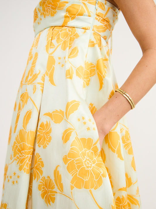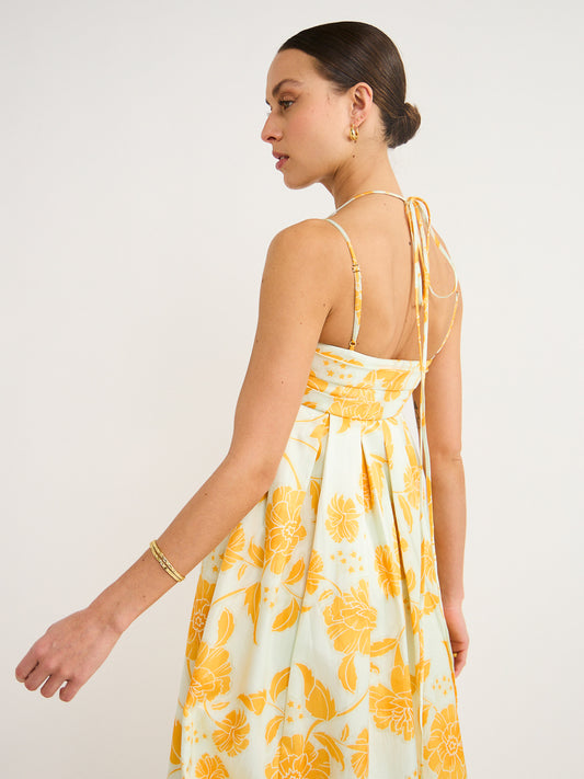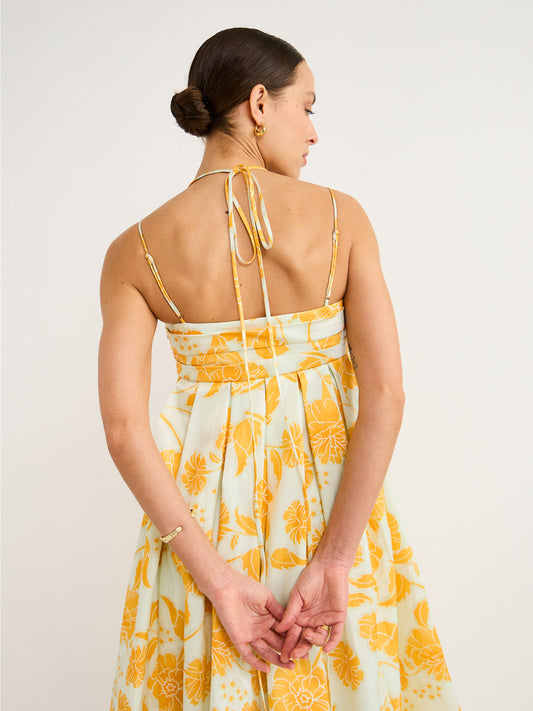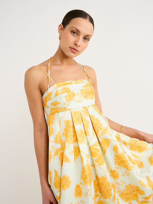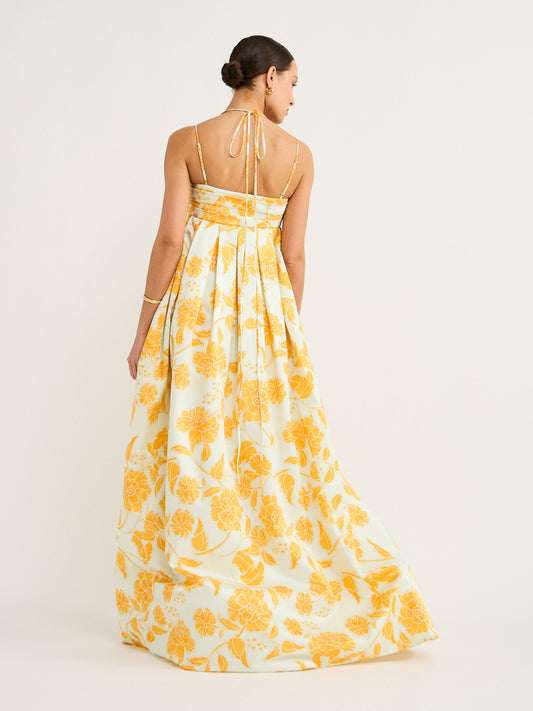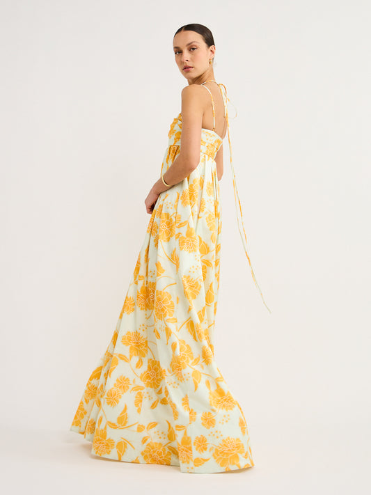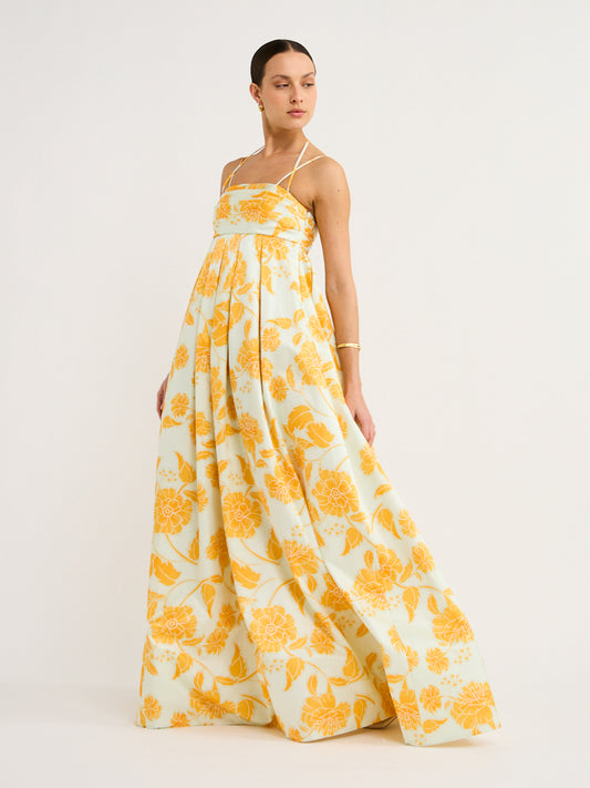 Be swept away with elegant florals in the Marguerite Maxi Dress in Anemone Ginger by LEO LIN.