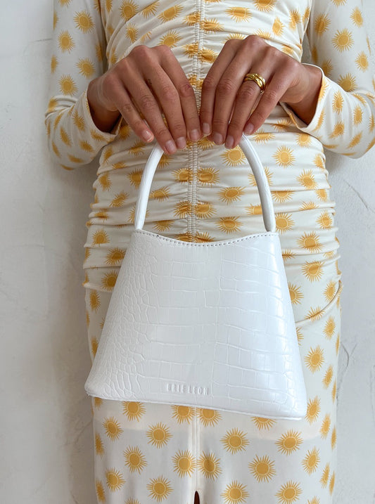 For special occasion styling, complete the look with the LMS The Violet in White, Porter Chunky Belcher Necklace 2.0 in Gold, Porter Triple Heirloom Ring in Gold, Brie Leon Large Uma Earrings in Gold and the Brie Leon Uma Drop Sleeper Earrings in Gold.