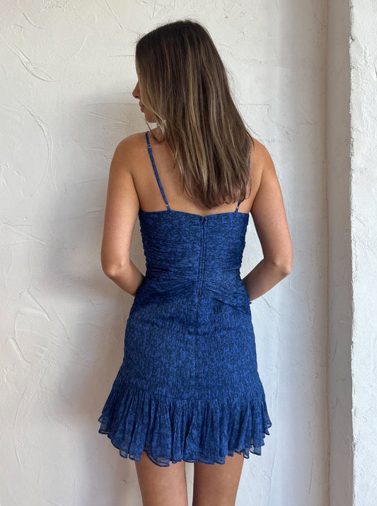 Shona Joy Saldanha Keyhole Mini Dress in Strong Blue/Deep Blue