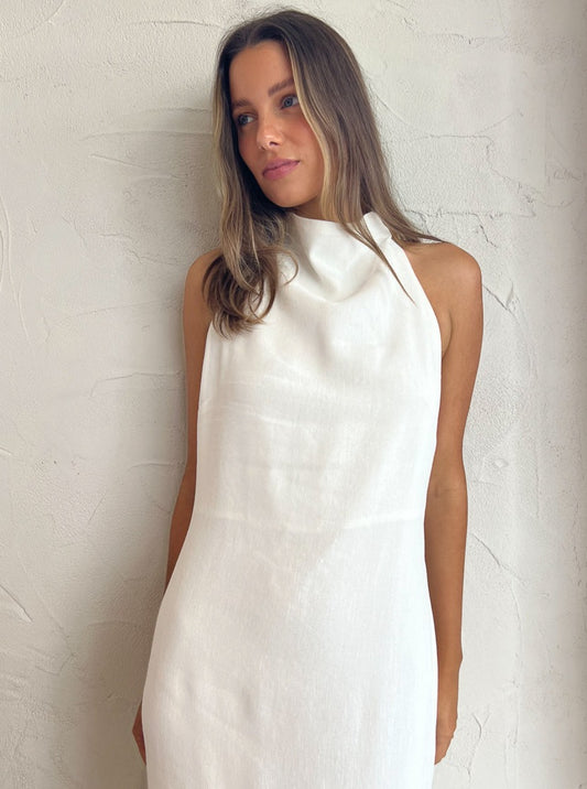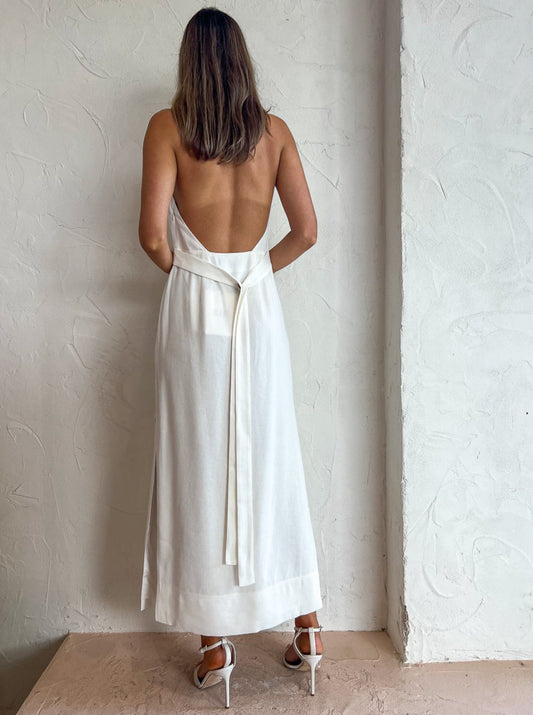 Sir Clemence Halter Midi Dress in Ivory