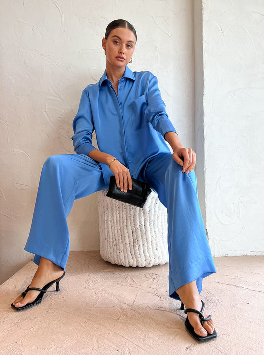 Coveted for its vibrant blue hue, pair it with the matching Chauffeur Trousers for an effortless desk-to-dusk look.
