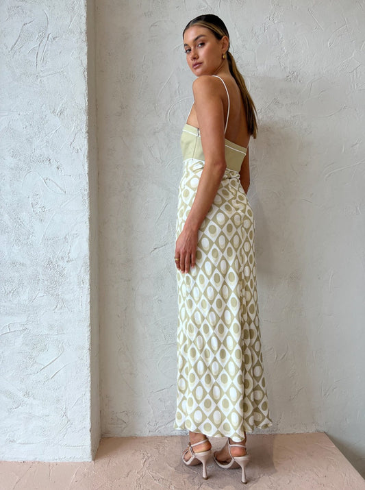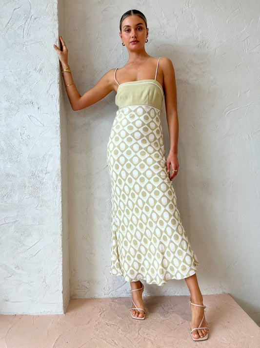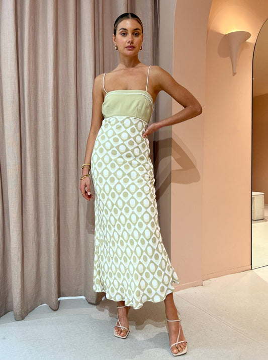 By Johnny Duality Spot Bias Midi Dress in Pistachio Spot