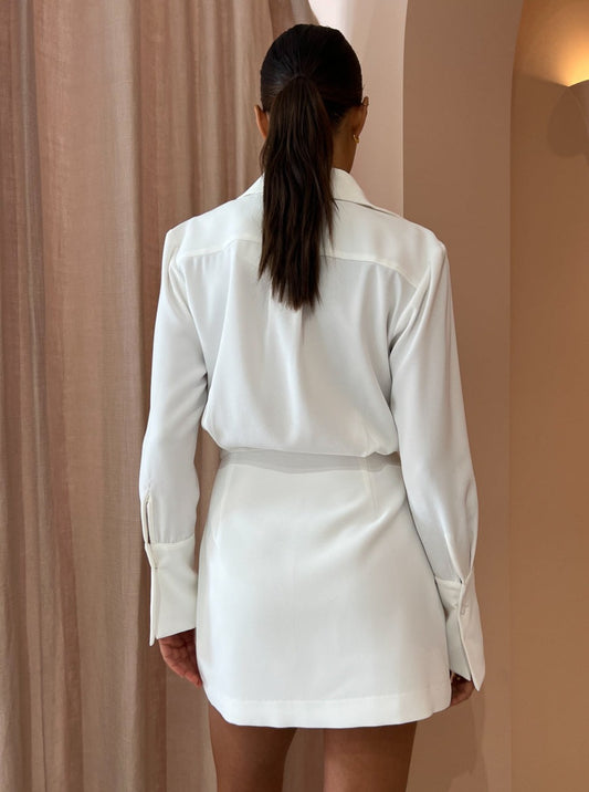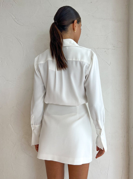 By Johnny Margot Mini Shirt Dress in Ivory