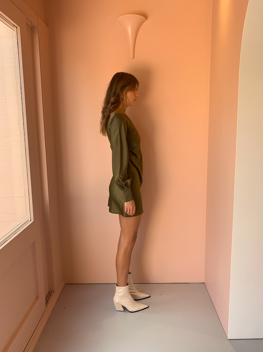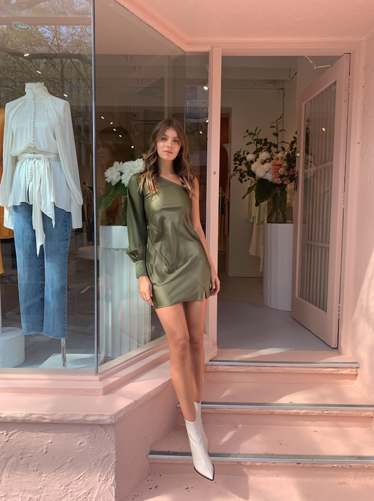 The By Nicola Eternal dress in Khaki is exclusive to Coco and Lola.