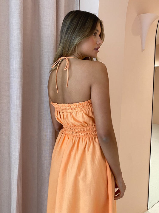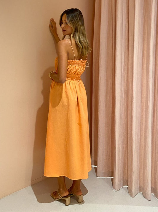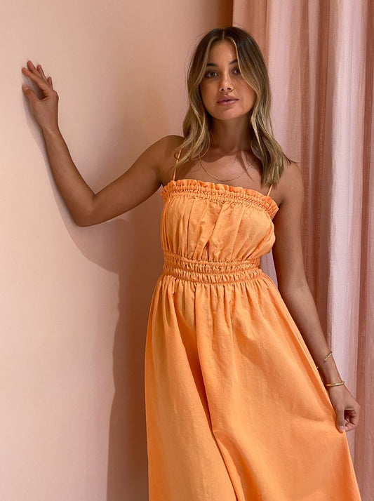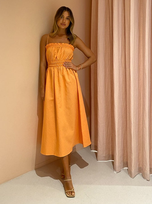 The By Nicola Flamenco Midi Dress in Mandarin is the sweet pop of colour for those balmy night and sunkissed days.