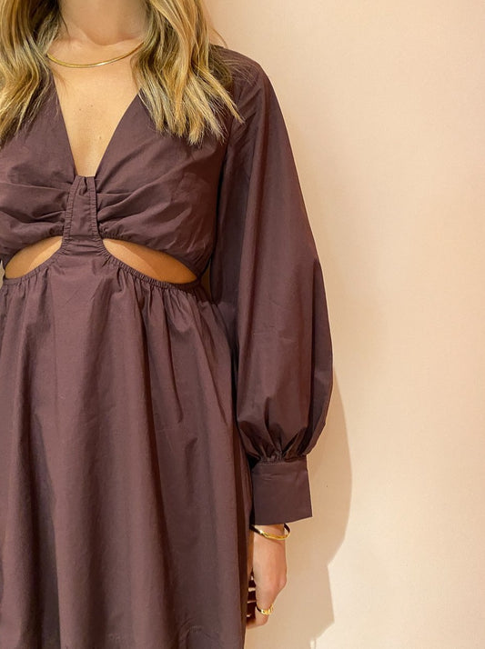 A Coco & Lola EXCLUSIVE, the Voyage Cutout Shift Mini Dress in Chocolate from By Nicola is a delectable mini for trans-seasonal styling.