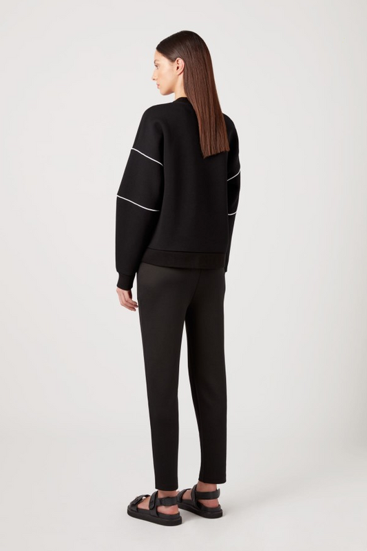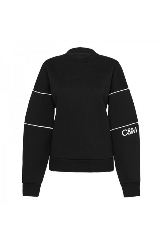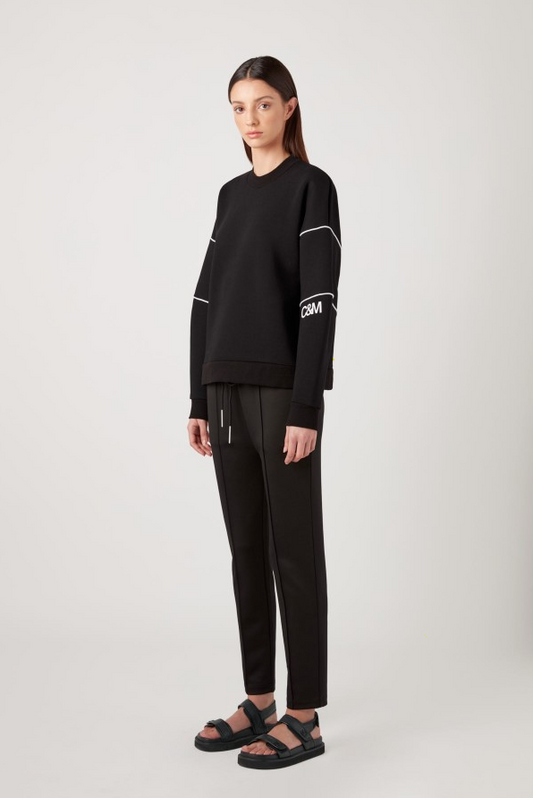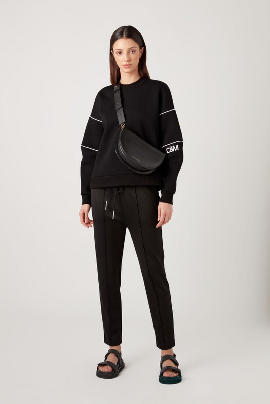 The Sylvie Crew in Black by C&M Camilla and Marc is a bonded fleece crew neck sweater with contrast logo and piping detail.