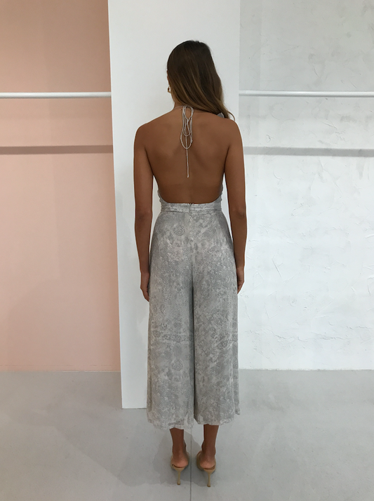 Exclusive to Coco and Lola, the Viper jumpsuit features a halter neck and shirred front with statement open back and is finished off with a wide-leg palazzo pant.