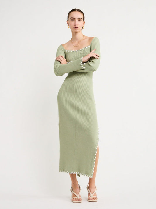This Mon Renn Trace Knit Midi Dress is the perfect choice for any sophisticated look.