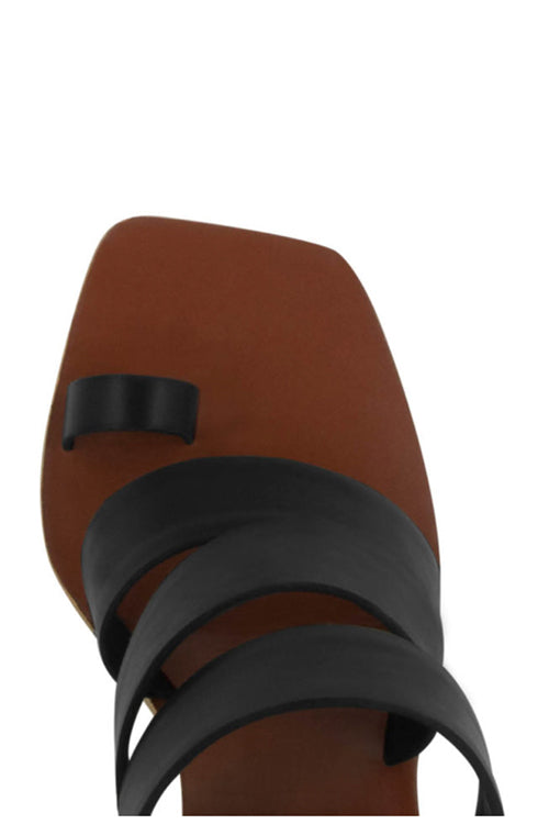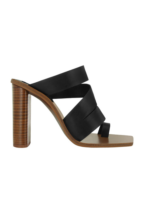 The Yasmina are a strappy leather mule with a cool 10cm wooden heel and man made sole.