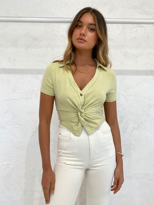 A fresh take on the traditional polo, we adore the soft twisting through the front.