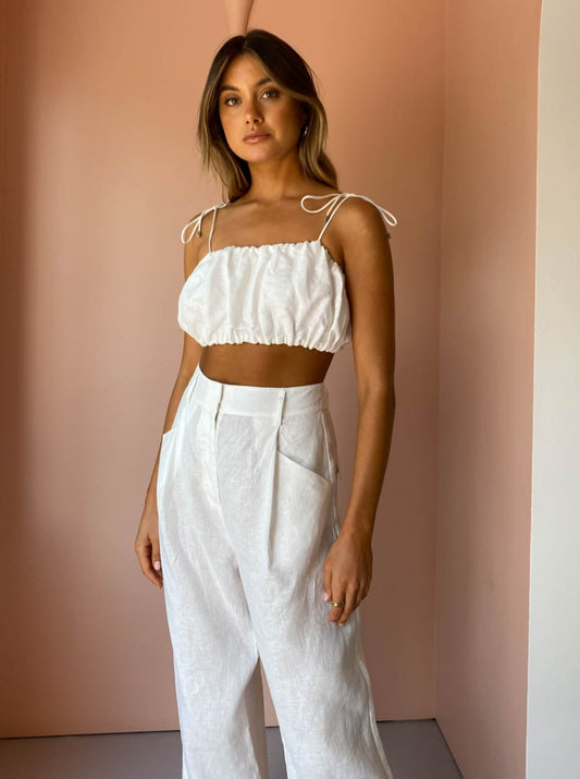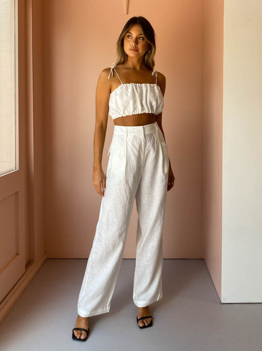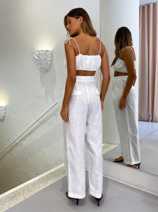 Look effortlessly chic and sophisticated in the soft tailored Tommy Pant in White by Steele.