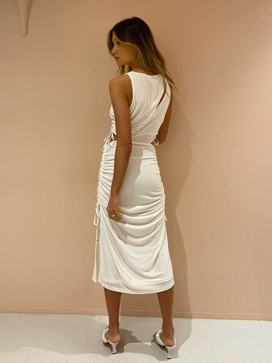 Suboo Liz Rouched Midi Tank Dress in Cream