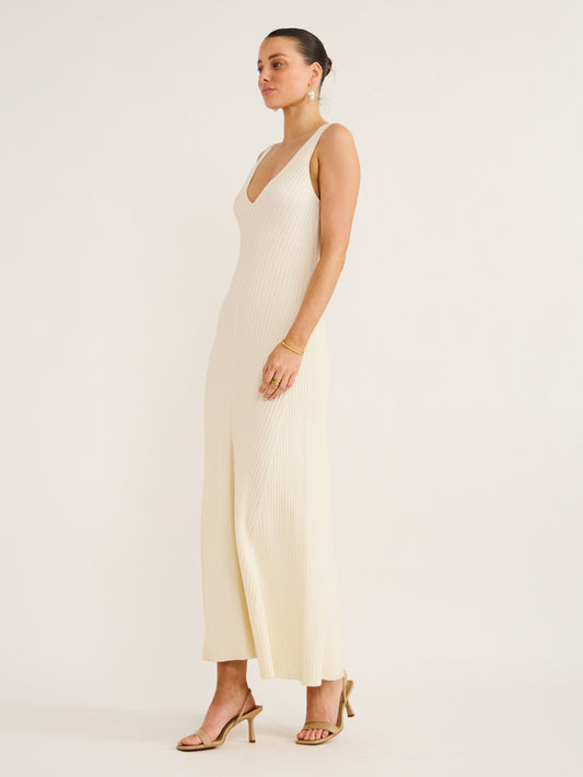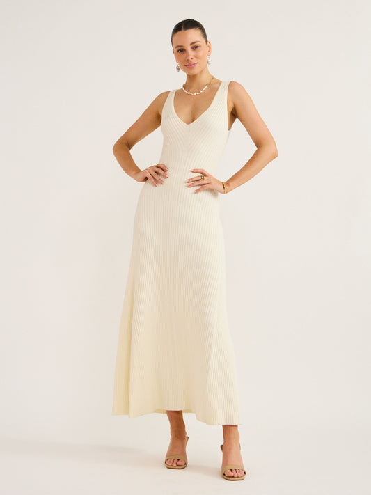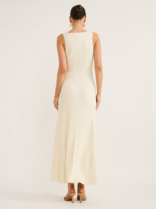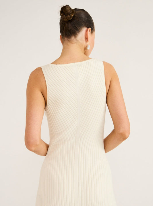 Crafted from a signature rib knit fabrication, this midi dress is designed to be flattering and form-fitting through the bodice, with soft movement through the skirt.