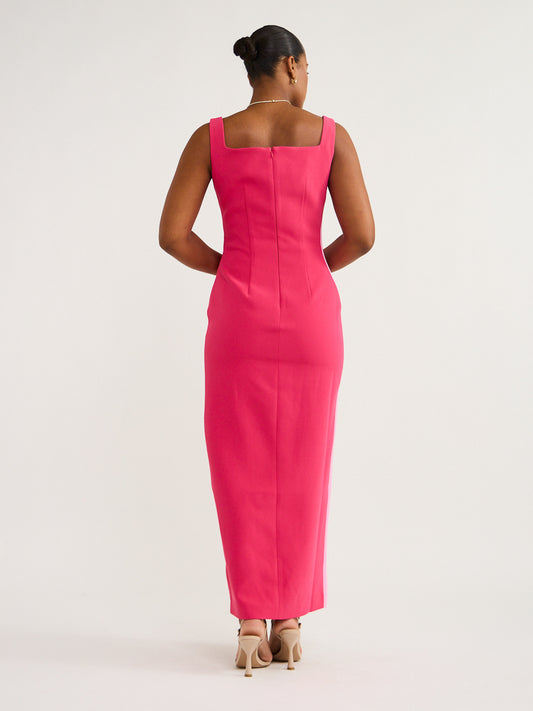 Finished with contrasting pink panels and an invisible zip at the back, this feminine and sultry dress will elevate your date nights and birthday celebration looks.