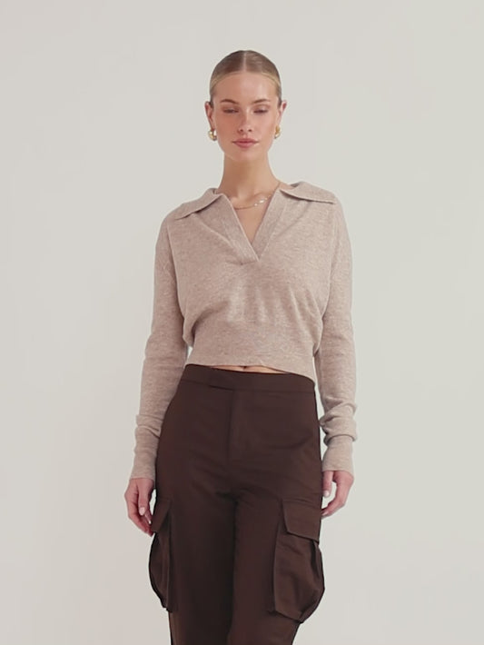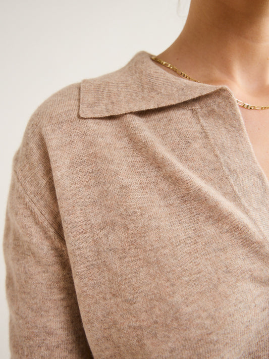 Elevate your everyday look with this timeless, Collared Sweater in Earth by ROMY.