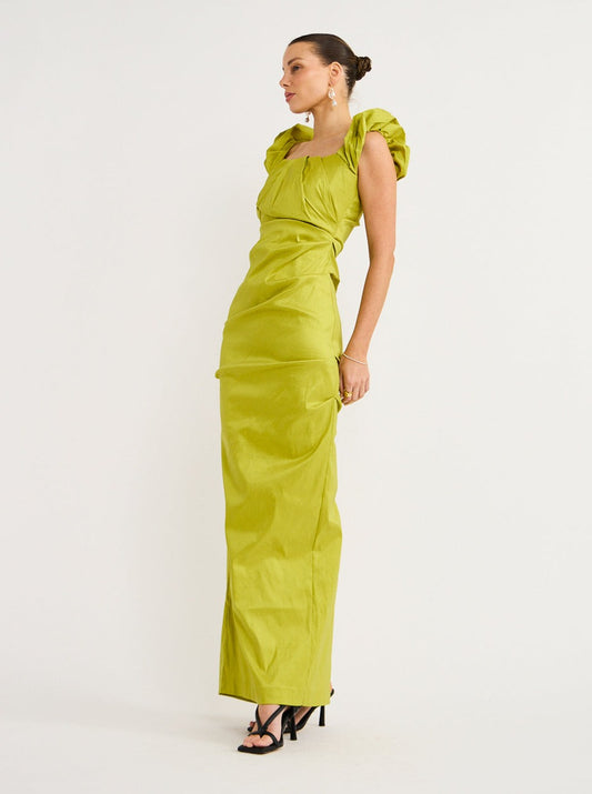 Indulge in modern luxury with the Kalina Gown in Green from Rachel Gilbert.