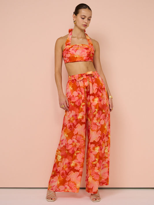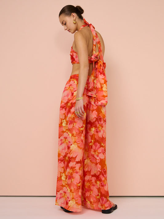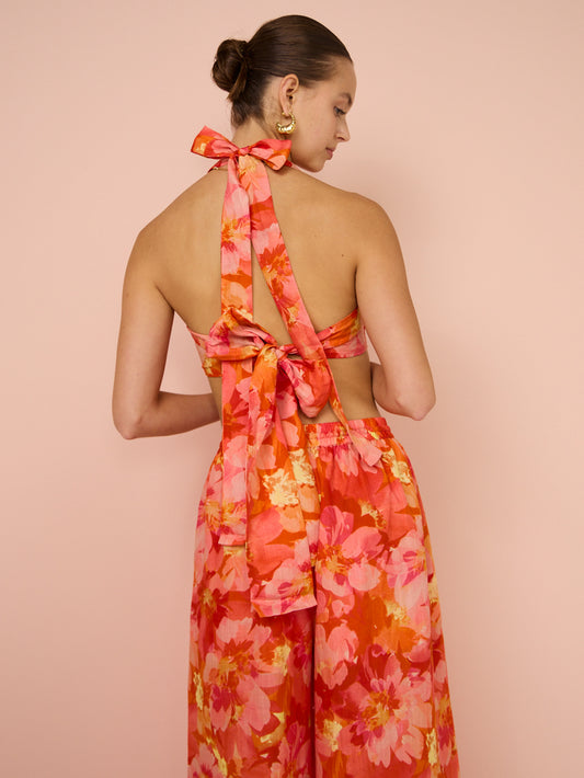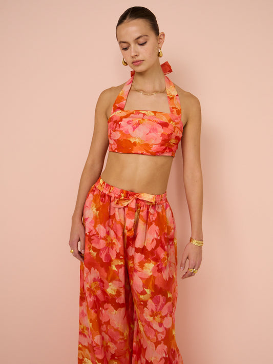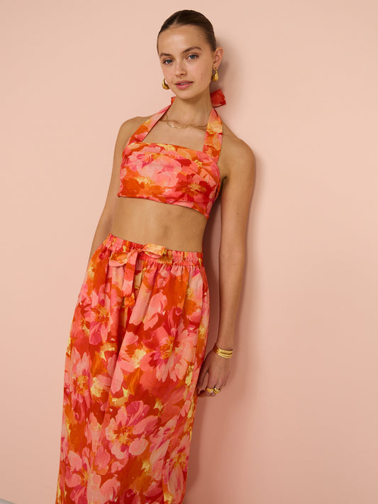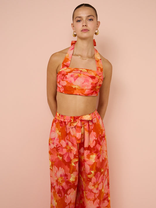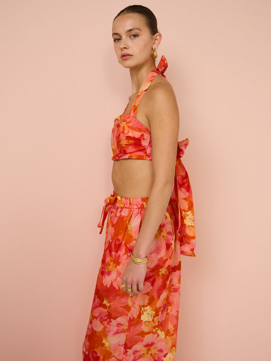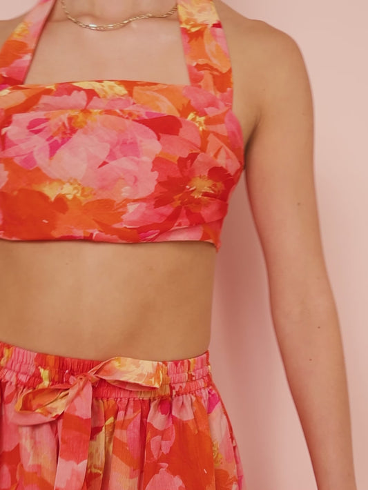 Sofia The Label Ella Crop Halter Top in Red & Pink Floral