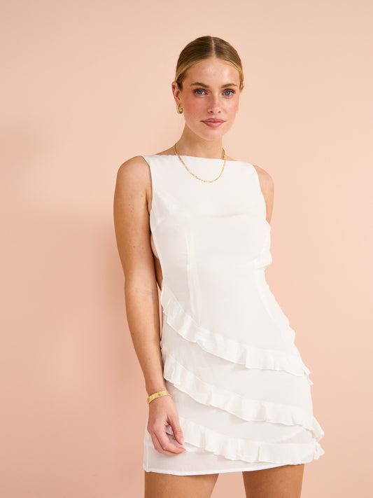 Isabelle Quinn Tina Ruffle Mini Dress in Ivory