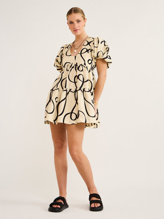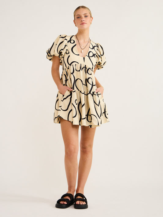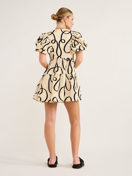 Shona Joy Vietri Short Sleeve Mini Dress in Bone/Black