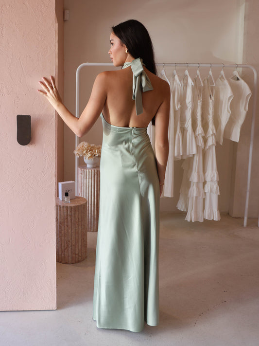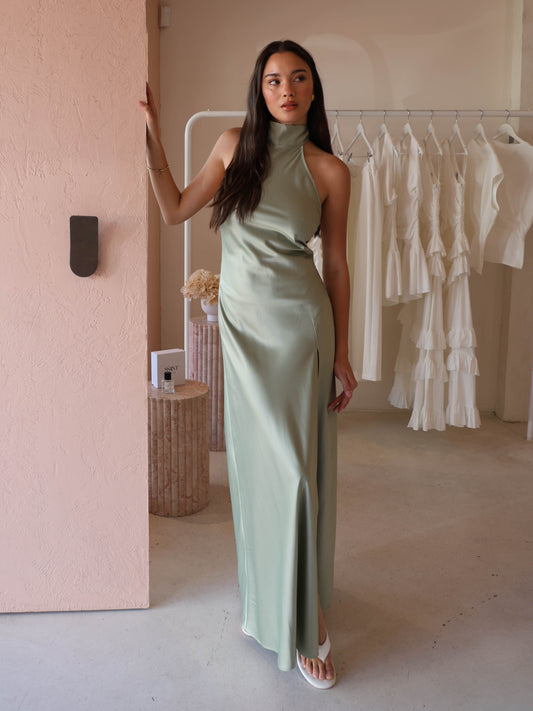 By Nicola Esme Halter Maxi Dress in Pistachio