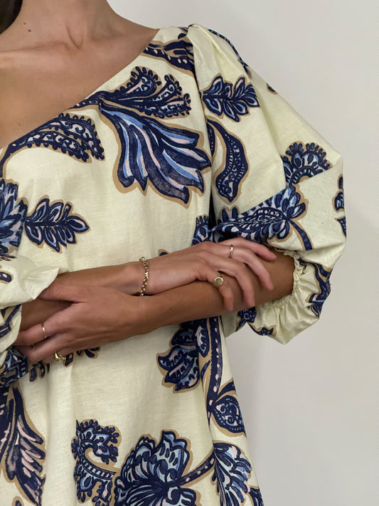 By Nicola Capri Mini Dress in Blue Paisley