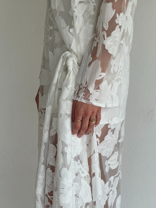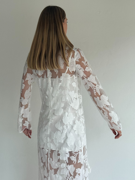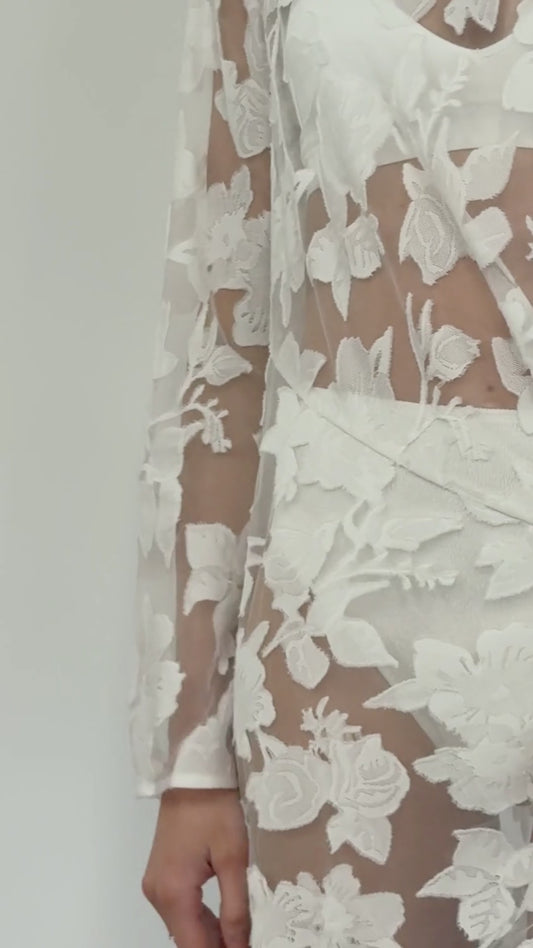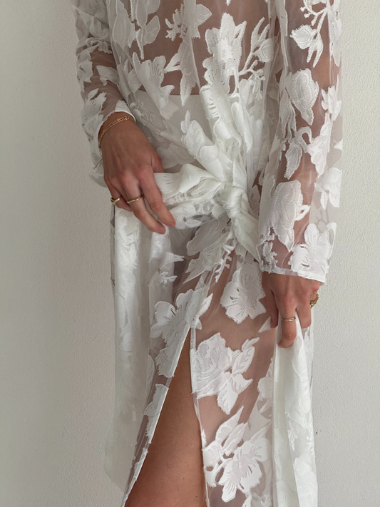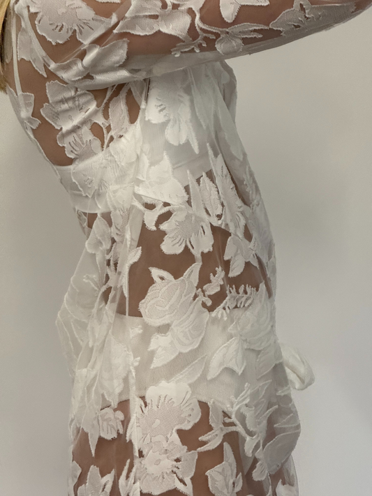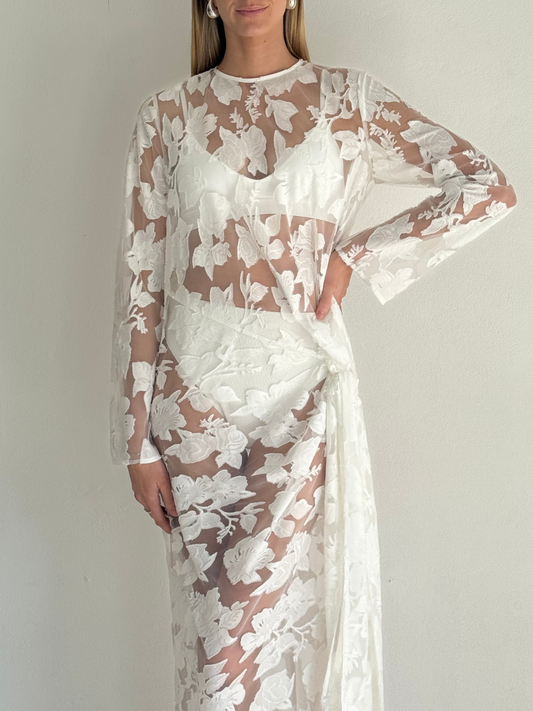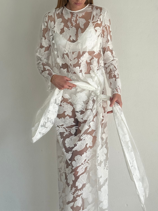 Made from a soft and delicate mesh with floral lace applique, this style comes with an adjustable slip and tie that can be styled through the twist detail, around the neck and waist.