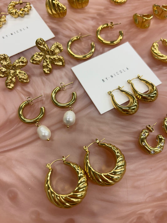 The Fleur Earrings from By Nicola are made from stainless steel and 18k gold plated. Waterproof, tarnish resistant and come packaged in a small gift pouch.