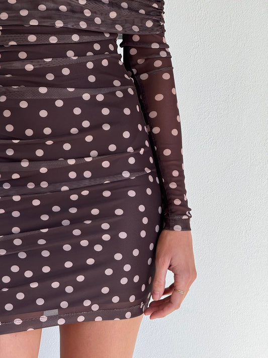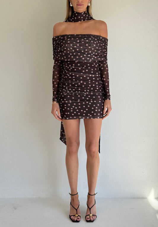 By Nicola Boston Mini Dress in Chocolate Polka