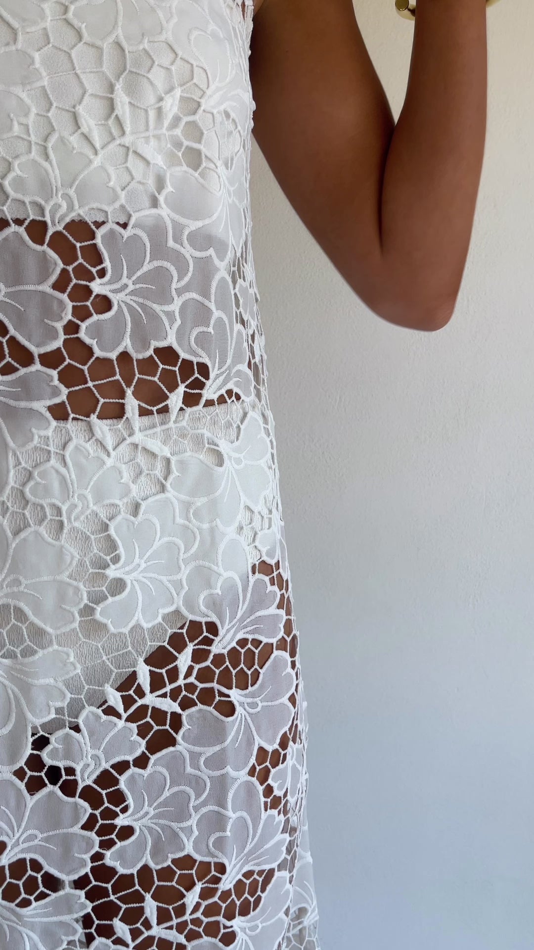 White lace Tove maxi dress by By Nicola featuring floral lace embroidery and a relaxed silhouette