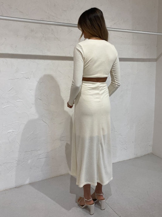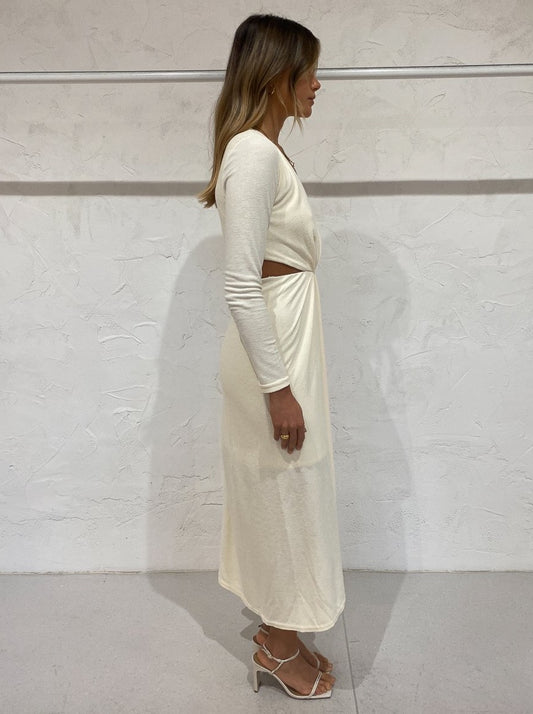 A transeasonal silhouette, the Brighton is cut with an asymmetric midi length hemline and long sleeves. In signature Acler style, feminine form is highlighted with a plunging v-neckline accenting the femme decolletage and the subtle side cut out details.