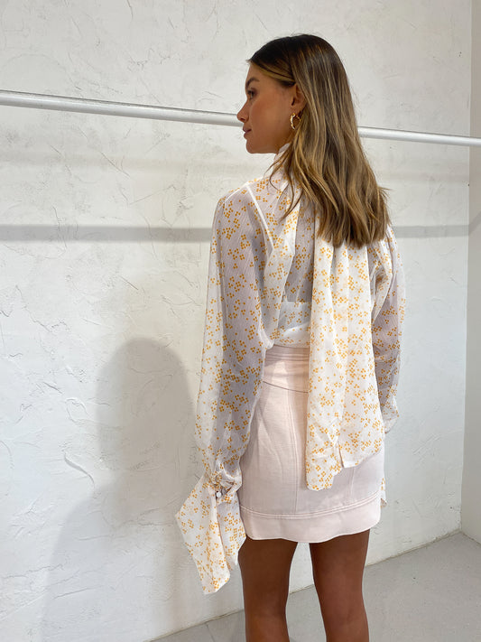 The Cathedral Blouse in Yellow Spot from Acler has us falling for billowing silhouettes with delicate detailing.