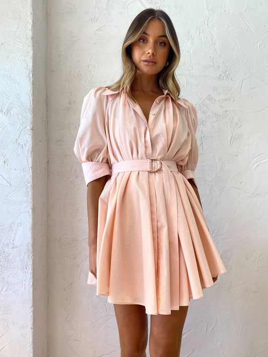 The Lorne Dress in Dusty Pink from Acler is a quintessential blush hued mini moment.