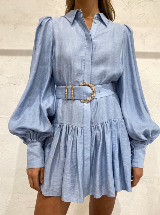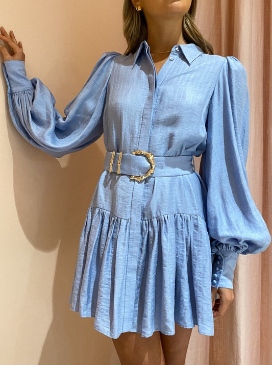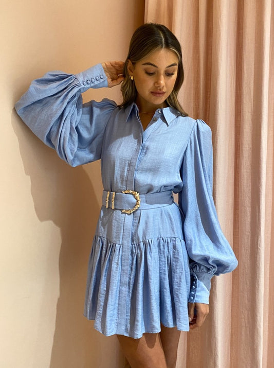 Beautifully crafted from a luxurious soft linen blend, the Sherwood is cut in the signature Acler shirt dress silhouette and features button cuffed blouson sleeves, a collared v-neckline and high waist detachable belt with gold bamboo hardware to cinch the waist.