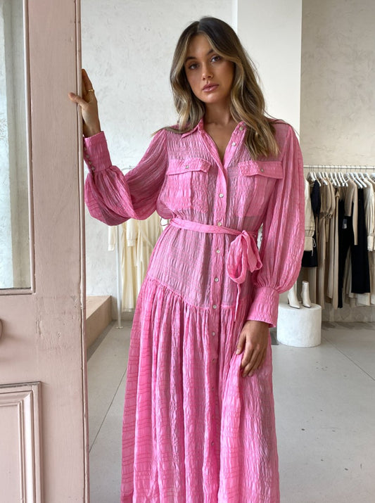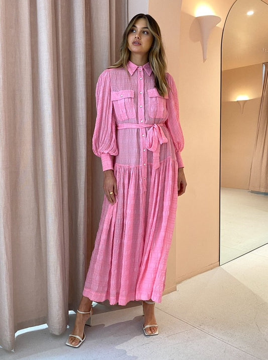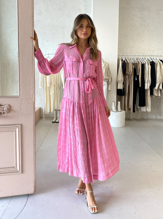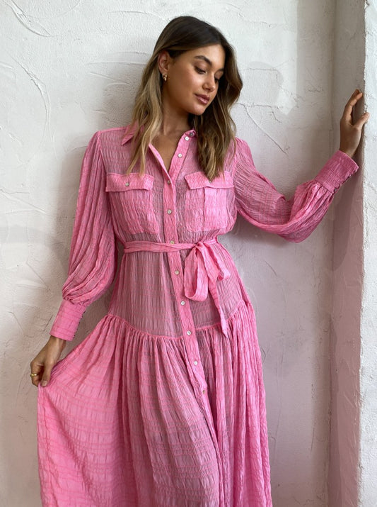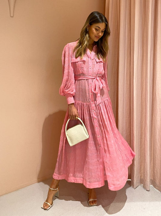 The Alémais Antonella Shirt Dress in Pink is a trans-Seasonal investment style that will fill your Coco closet with endless special memories.