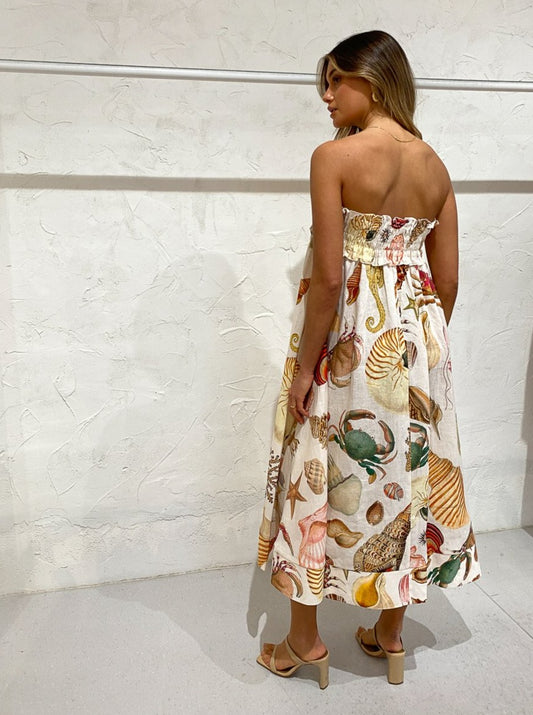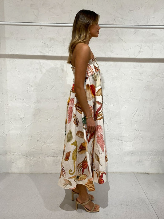 The Atlantis Skirt Dress from Alemais blends versatility and effortless styling with a timeless statement print.