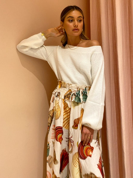 Embrace its style versatility wearing it as a skirt for long lunches and dinner parties with the Hansen and Gretel Kyle Jumper in White and the Manning Cartell Future Moves Loafer