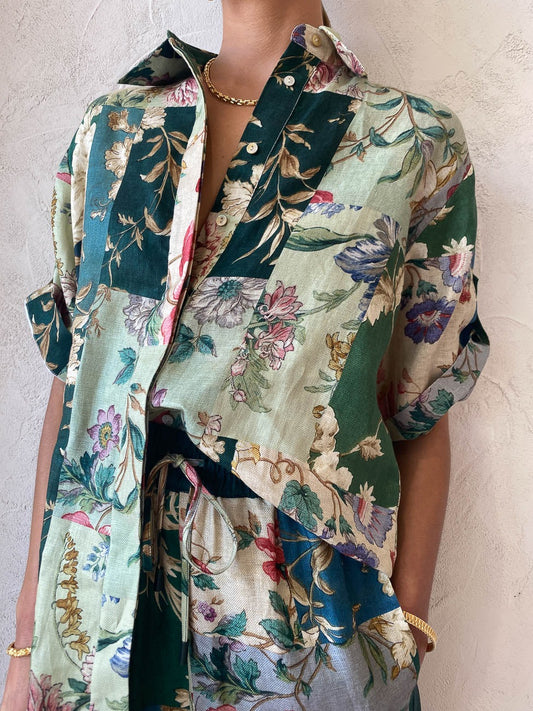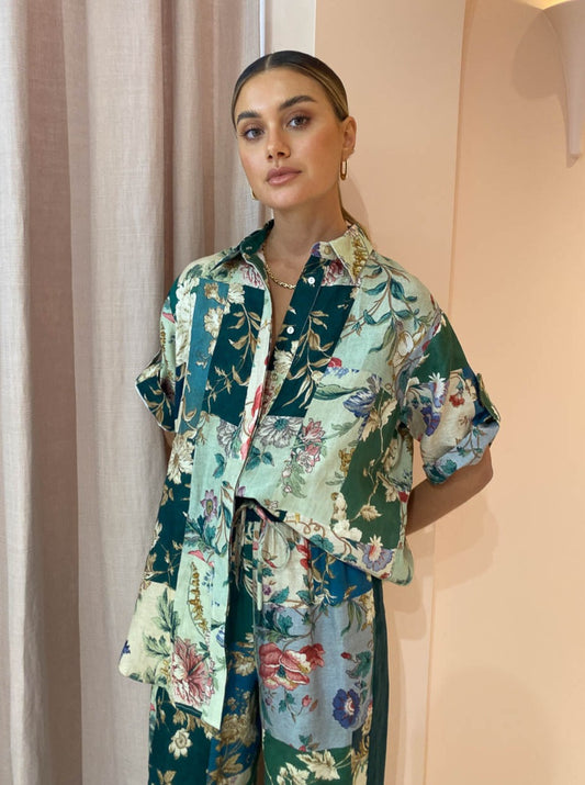 For a matching set look complete with the Alemais Loretta Shirt in Sage Floral, Camilla and Marc Twister Flat Sandal in Black, Amber Sceats Hudson Bracelet in Gold and Porter Frill Cuff in Gold