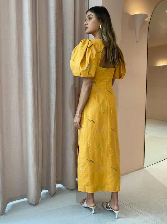 Occasion styling made easy with the Sundance Midi Dress in Marigold by Alemais.