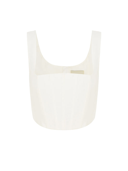 Crafted from a cotton and linen fabrication, this bustier offers modern versatility with  its considered design details. The structured boning ensures a secure fit that flatters the femme form, while the square neckline adds a flirty flair.