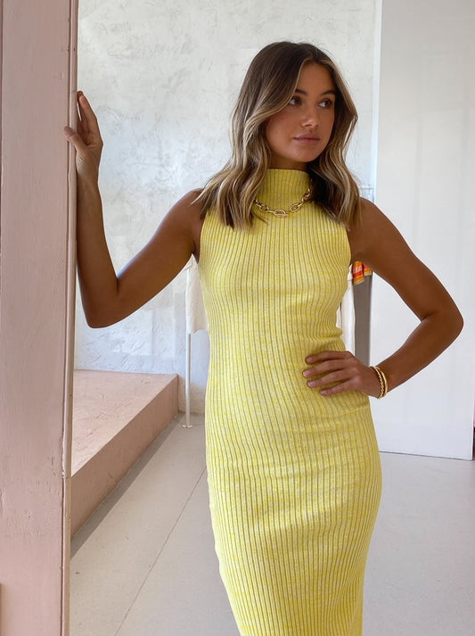The Anna Quan Aleka Dress in Limoncello is a signature ribbed style to wear on rotation throughout the seasons.