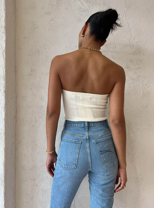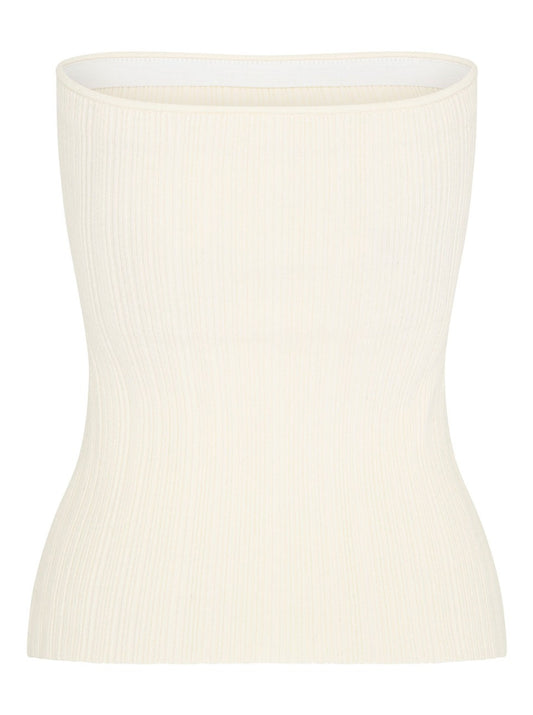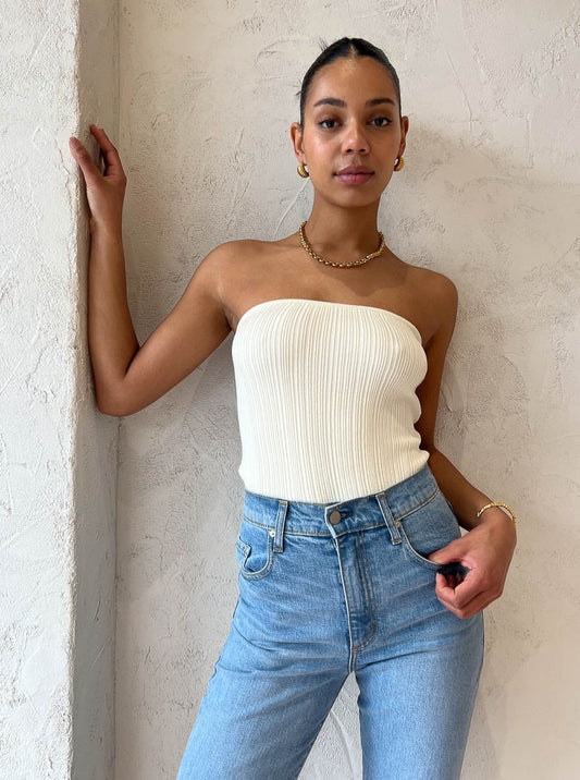 Thoughtfully crafted from a ribbed cotton knit, this strapless top is made for a figure hugging fit with a straight neckline and hem finishing below the waist.
