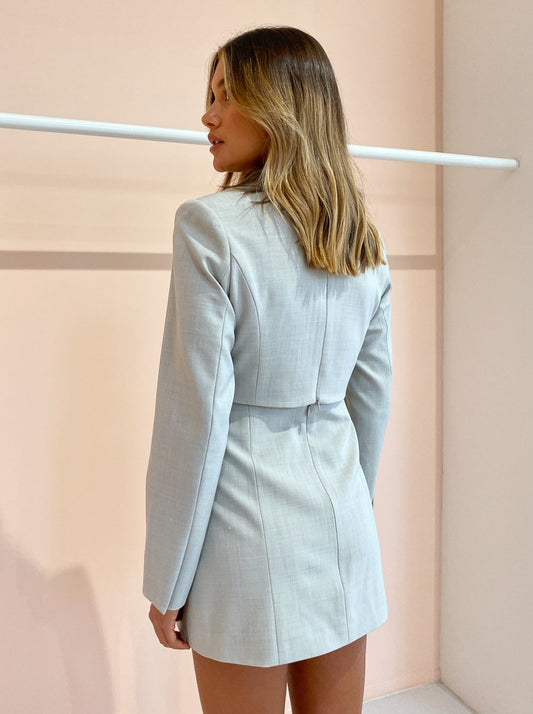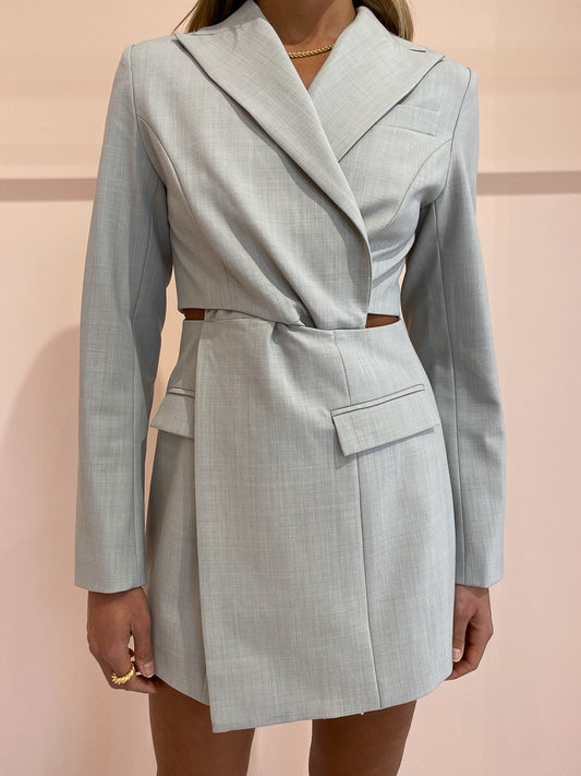 This structured blazer dress features a twist and cut out detail at the waist which adds a youthful touch.