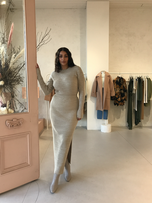 Their new collection is filled with softly hued separates that coordinate so beautifully - the Oatmeal melange shade of this mélange 'Ruby' skirt matches the brand's top perfectly. Slit at one side, it's rib-knitted from cotton to ensure the fitted silhouette is flexible.