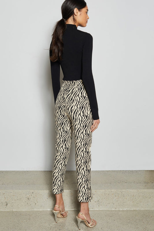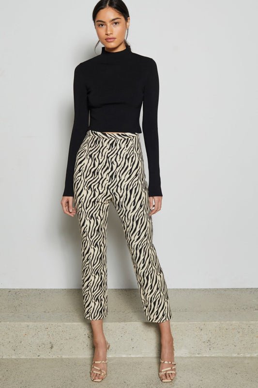 The Bec and Bridge 'Cecile' pant is a Coco HQ favourite. Crafted from textured jacquard fabric, these high waisted slim leg pants are a slightly cropped fit with zipper at centre back for entry.