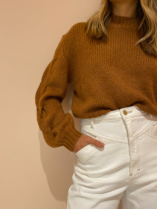 The Celeste Knit Jumper in Clay from Bec & Bridge has us falling in love with 70's silhouettes in warm chocolate hues.
