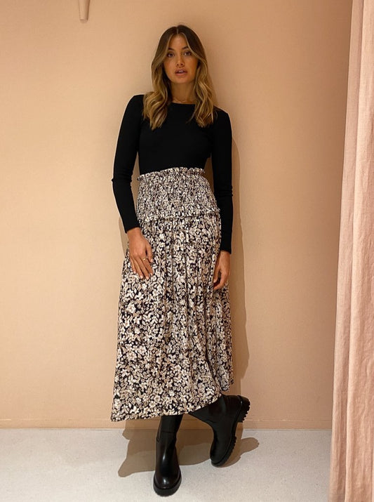 Intricately detailed with a gathered skirt and shirred waist, we adore this midi skirt to carry you from desk to drinks and into the weekend.
